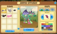 The Change Your Look carte allowed the thespian to view their clothing inventory and select items to wear. Below the item inventory was a large "Sort By" push that allowed the actor to rearrange the item listing by certain types. This bill of fare likewise immune the role player to customize their animal's colors, pattern, and eyes, only in that location were just 20 color options available for each. The eye of the bill of fare had a bones preview of the fauna with a large "Clear" button that would remove the changes.
