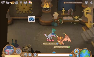 The Sleeping accommodation of Knowledge, originally called the Chamber of Mysteries, was a long, narrow room full of mysterious items and books. This first room featured pocket-sized tables with picture reels on them and a doorway on the far right side. The adjacent level was another long room filled with ancient relics, mysterious symbols, and iconography of the Alphas as well as the guardian spirits Zios and Mira. This second room featured the Gem Ball game near the entrance and interactive candles along the walls.